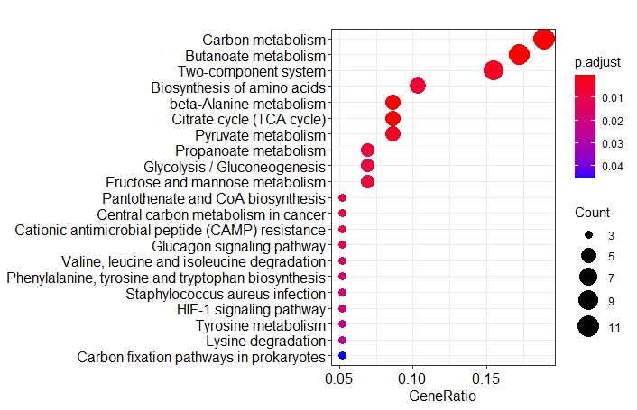 barplot(ekegg, showCategory = 20)